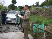 4月25日(金) ■産廃の不法投棄で県職員と現地調査八千代市の産業廃棄物不法投棄現場で、土地の所有者の方や県廃棄物指導課の職員と一緒に、現地を調査しました(右の写真)。写真の右後ろに見えているのが、不法に投棄された産廃の山。 ここの現場は、不法投棄がされていたときから県への通報が行われていたにもかかわらず、有効な手立てがとられず、しかも県が7年間も放置してきたその間に、投棄にかかわった人物が行方をくらましてしまいました。 地権者の「何とかしてほしい」「こうしたことが起きないために税金を払って県に指導をお願いしている」という声に対して、「今年度、土壌の調査について予算計上した。その後の措置については検討していきたい」と答えました。 この調査には、日本共産党の堀口明子・八千代市議も一緒でした。 |